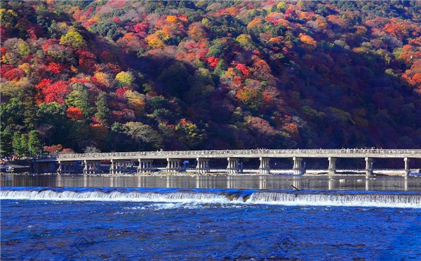 在京都還去了嵐山賞楓葉。嵐山是京都著名風景區,有“京都第一名勝”之稱。還看到了嵐山的象征渡月橋。橋下大堰川繞嵐山腳下潺潺流過,兩岸山上松柏青蔥茂密。