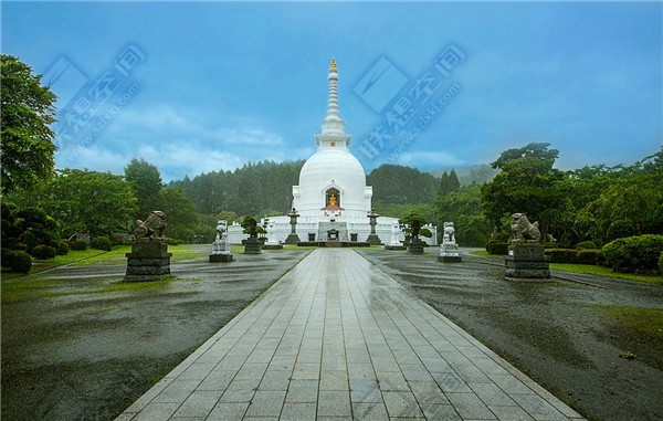 平和公園是典型的日式庭園建筑,簡潔干凈。園內最為著名的是一座來自印度的舍利子塔,白色的塔身,下面放有金色的佛像,筆直地屹立在平和公園的大廣場上,從佛性的慈悲表達了反戰訊息。