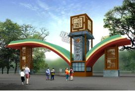 校門形象設計根據學生年齡以及學校歷史背景,顯示是各種不同文化風格校園文化